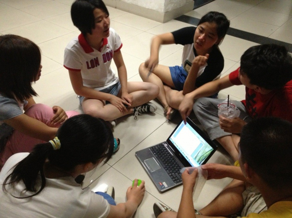 生命科学学院在七月初举行了暑期社会实践出征仪式之后,团队九位同学和老师开始了一系列的行程安排,为接下来长达一周之多的实践活动出谋划策起来。天气的炎热铺成他们额头上的层层汗珠,邵老师和同学们讨论时一挥手汗水就散落一片。有时候实在太热了,十个人就干脆坐在了地板上围成一圈,对着各种资料,一边抹汗一边讨论。“当时真的很热,席地而坐给我们也降不了什么温度,但是现在回想起来那种情景倒还真是一种独家回忆!”
