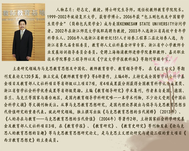舒志定:我的主要研究领域是教育哲学。近年来主要聚焦马克思教育思想及其当代价值、教师教育学、教育领导学等领域的教学、研究和优米app官方下载入口手机版工作。其中,马克思主义教育思想及当代价值研究,我是从2002年开始就一直坚持研究到现在,主持完成马克思教育思想研究的国家社科基金项目和教育部人文社科项目,去年又主持《马克思人学教育思想当代价值研究》等教育部人文社科项目,研究论文在《教育研究》、《教育学报》等期刊发表,出版《马克思教育思想的当代阐释》《人的存在与教育—马克思教育思想当代价值》等著作。教师教育哲学研究也是我的研究兴趣。我是从东西方教育哲学思想汇通中阐述教师教育哲学的理论框架,从解释学教育学、现象学教育学等教育思潮中寻求中国教师教育哲学理论构建的思想资源。与教师教育研究相关的,是教育领导学的研究。这也是我新拓展的研究领域。教育领导学是教育管理理论发展的新成果。管理是如何把事情做正确,而领导则是做正确的事情。这三个研究领域,我是用马克思提出的“现实中个人”作为研究教育的逻辑起点,以“人是对象性存在”作为研究教育的思想方式,使三个研究领域的研究假设与研究旨趣相互关联、一以贯之。