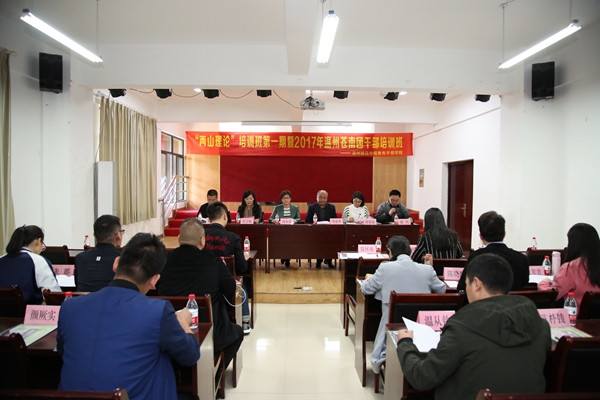 为推进全省党政机关、企事业单位、中小学、高等学校团线青年干部认真学习、宣传、贯彻党的十九大精神和习近平同志重要系列讲话精神,牢固树立社会主义生态文明观,推进青年团干部领导生态文明建设的能力,10月30日,由校团委和商学院党委联合举办的青年干部学院两山理论专题培训第一期暨2017年温州苍南团干部培训班顺利开班。党委委员、组织部长何小青出席开班仪式。