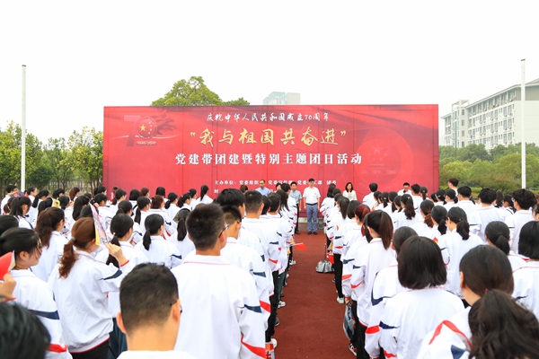 活动最后,现场人员自发演唱《我和我的祖国》一曲,瞻仰着高高飘扬的五星红旗,每一句歌词都饱含着我校师生对祖国母亲的深情表白,每一个音符都是内心的真情流露,祝福祖国繁荣昌盛,也寄托了青年学子为实现中华民族伟大复兴这一中国梦而拼搏奋斗的坚定信念。