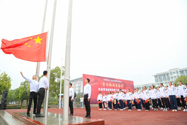 升旗仪式后,蒋云良发表了情真意切的感言,他对新中国成立70年来迢迢奋斗路感慨不已,并与在场师生分享了三点内涵丰富的个人感悟。首先,他引用西汉史学家司马迁的“常思奋不顾身,而殉国家之急”一语,指出“爱国是每个人最基本的素养”,并提倡广大青年以真才实干、以服务奉献爱国,自觉地将个人事业与国家发展、民族复兴紧密相连。其次,他引用开国领袖毛主席的“为有牺牲多壮志,敢教日月换新天”一句诗词,鼓舞大家用奋斗书写人生,特别是青年大学生,要敢于吃苦、敢于磨炼,通过自己的努力奋斗实现美好的生活。最后,他以习近平总书记“中国梦是历史的、现实的,也是未来的;是我们这一代的,更是青年一代的”号召,鼓舞全体师生应当不忘初心、牢记使命,在历史与现实的对话中获取奋斗的智慧、汲取奋进的力量。