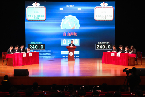 12月4日晚,校第七届胡瑗文化节闭幕式暨第十五届“明达杯”辩论赛决赛在东校区会堂落下帷幕。来自马克思主义学院、外国语学院、商学院和理学院的四支辩论队经过层层选拔,脱颖而出,最终进入决赛,给在场1000多名师生带来了一场高水平的思想盛宴。