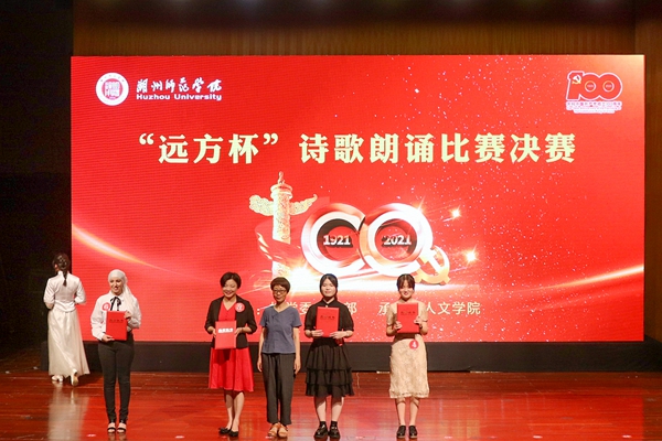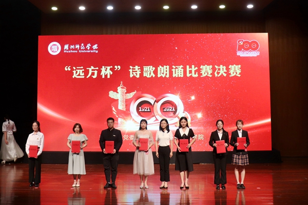 为庆祝中国共产党成立100周年,6月7日晚,由优米app怎么下载安装主办,人文学院承办的“远方杯”诗歌朗诵比赛决赛在中校区音乐厅举行。校党委副书记陈永华,党委委员、宣传部长杜宁出席。本次比赛邀请了原校党委副书记、“远方诗社”创始人杨柳,国家级普通话测试员、人文学院副教授苏向红,湖州市朗诵协会会长、国家一级播音员张云峰,湖州市朗诵协会理事、2019诗画浙江朗诵展演一等奖获得者霍磊磊作为嘉宾。