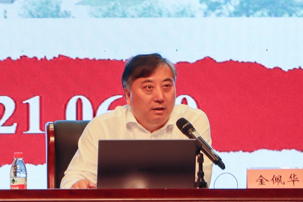 课上,金佩华用“一个根本成就、两场伟大革命、三次伟大飞跃、四件大事”精辟地讲述了中国共产党的百年辉煌史,开创、坚持和发展了中国特色社会主义这一根本成就;领导人民进行伟大社会革命和领导全党进行伟大自我革命两场伟大革命;实现从“站起来”到“富起来”再到“强起来”的三次伟大飞跃;完成和推进了救国、兴国、富国、强国四件大事。金佩华指出,中国共产党的100年是不忘初心、牢记使命、接续奋斗的100年,要按照习近平总书记在党史学习教育动员大会上“用党的奋斗历程和伟大成就鼓舞斗志、明确方向;用党的光荣传统和优良作风坚定信念、凝聚力量;用党的实践创造和历史经验启迪智慧、砥砺品格”的要求,通过深入学习党史,进一步树牢“四个意识”,坚定“四个自信”,坚决做到“两个维护”。