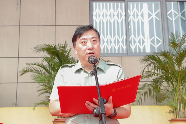 金佩华代表学校向承训部队表示感谢,向从事军训组织和保障工作的各位老师致以诚挚问候,向2021级全体新生表示祝贺。金佩华充分肯定同学们在军训过程中的出色表现,并提出三点希望:一是希望同学们尽快完成角色转换,适应大学生活;二是希望同学们尽快融入湖州师院,坚持以校为荣;三是希望同学们尽快厚植家国情怀,铭记使命担当。