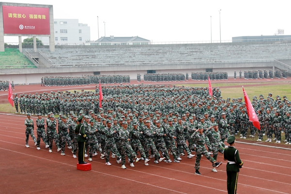 9月28日上午,我校2021级新生军训汇报表演暨总结表彰大会在学校风雨操场隆重举行。校党委书记金佩华,校长蒋云良,校党委副书记丁敢真,副校长舒志定、潘音,党委委员、办公室主任劳士健,中国人民解放军某部队军官、军训团团长刘飞出席。学校相关部门及各二级学院负责人、教师代表、承训部队教官和2800余名2021级全体受训新生参加了汇报演出。大会由丁敢真主持。