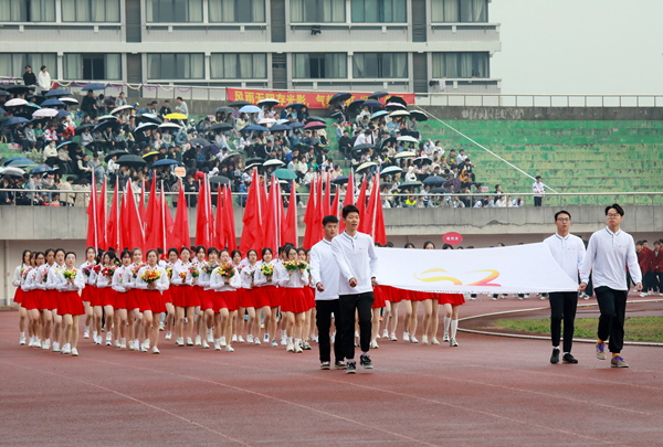 舒志定致开幕词。他强调,强身健体、以体育德,是学校全面贯彻党的教育方针、全面落实立德树人根本任务的重要举措。只有健康强壮的体魄才能焕发青年的活力与激情。特别是在防控疫情的大背景下,我校坚持德智体美劳五育并举,在全校形成了珍视健康、热爱运动、积极向上的良好氛围。他希望本届运动会办成高风格、高质量、高水平的盛会,并提出三点要求:一是要提高站位、凝聚智慧;二是要拼出成绩、赛出风格;三是要敬畏规则、崇尚文明。