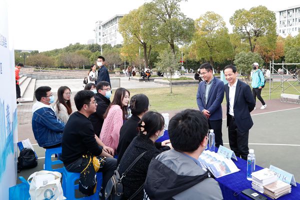11月20日下午,由浙江省教育发展中心、浙江省社会保险和就业服务中心主办,我校与湖州市委组织部、湖州市人力资源和社会保障局联合承办的浙江省2022届高校毕业生湖州专场招聘会在东校区长兴广场顺利举行。校党委副书记丁敢真,浙江省教育发展中心党总支书记、主任林成格,浙江省教育发展中心学生就业部主任朱伟君,浙江省社会保险和就业服务中心就业管理处副处长叶永波,湖州市人力资源和社会保障局党组成员、就业促进与失业保险处处长朱新江,我校学生处、研工部、二级学院相关负责人,湖州市县区人社局相关负责人到场视察指导,并与用人单位和毕业生们进行亲切交流。