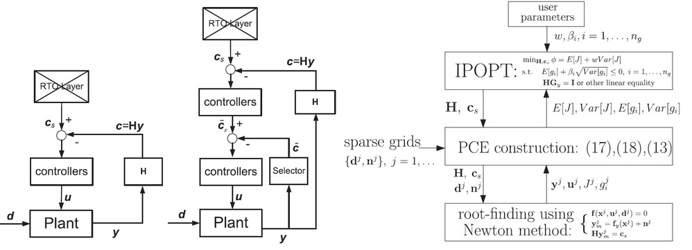 自优化控制是一种以选择被控变量为手段的控制结构设计和实时优化方法,合理的被控变量能实现系统在不确定条件下自寻优,有效提升流程工业的经济效益。研究表明,以系统输出的函数(虚拟变量)为被控变量具有更大潜力提升优化效果,如何求解最优变量组合是该研究方向的关键问题。近20年,该问题一直沿袭先对相关量进行局域泰勒展开,再简化得到关键量的解析表达,最后求解出组合矩阵的研究思路,导致性能具有很大局限性。该最新成果绕开现有研究模式,从原始非线性函数出发,提出一种基于混沌多项式的全局自优化控制求解新框架,将优化性能提升至操作空间全域。方法引入混沌多项式及稀疏采样等技术手段降低计算负荷、提升优化效率,保证了大规模问题的计算可行性。通过增加配置点/采样点,使结果能逼近真正的全局最优解,是目前已公开文献中唯一能达成该效果的自优化控制方法。文章还针对化工过程普遍存在的可变积极约束问题提出了机会约束的解决方案。
