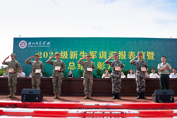 在历时两周的军事训练中,涌现出了一大批先进集体和个人。有精神风貌奖5个,内务优胜学院3个;队列会操学院12个;优秀组织奖4个、军训特别奖3个。人武部负责人宣读军训表彰文件,主席台领导为军训先进集体和个人进行颁奖。