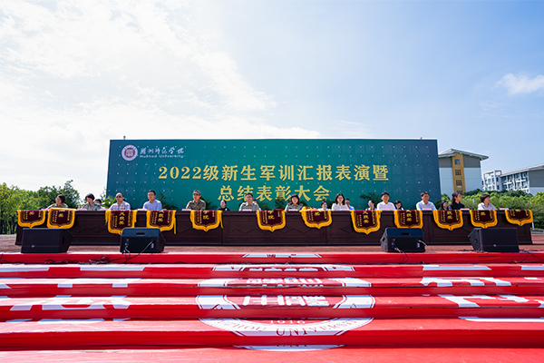 9月16日下午,我校2022级新生军训汇报表演暨总结表彰大会在学校长兴广场举行。校党委副书记丁敢真,中国人民解放军某部队军官、军训团团长龚国武出席。学校相关部门及各二级学院负责人、教师代表、承训部队教官和3206名2022级全体受训新生参会。