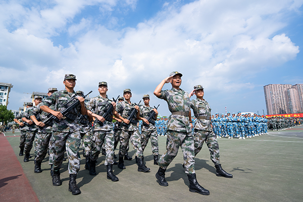 今年,我校首次邀请学生教官参与军训,他们曾参军入伍,在军营中历练成长,今天他们用实际行动践行誓言:艰难不止步,挫折不退缩,家国永在心。