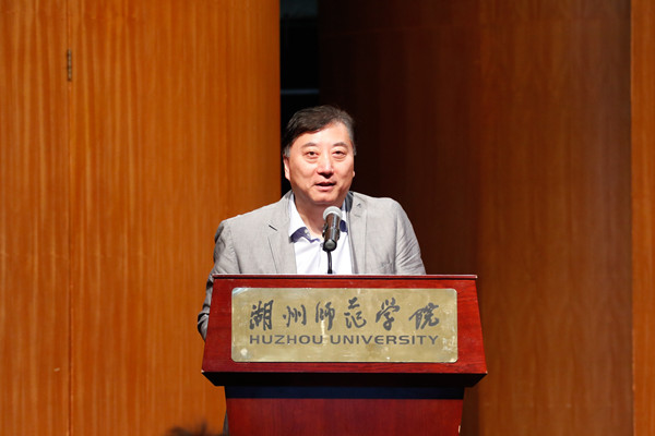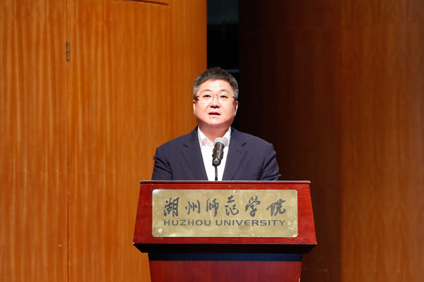金佩华代表学校对音乐戏剧产业学院的成立表示热烈的祝贺,对吴兴区委区政府长期以来给予学校的大力支持表示衷心的感谢。他指出,学校始终牢记习近平总书记主政浙江期间来校视察时对学校提出的“因地制宜、体现特色、服务地方”殷殷嘱托,奋力打造城市与大学命运共同体。吴兴是湖州的首位区,是学校服务湖州的重点,今天在吴兴区人民政府的大力关心和支持下,音乐戏剧产业学院揭牌成立,标志着我校与吴兴区的合作又结新硕果。希望音乐戏剧产业学院传承好吴兴红色文化基因,挖掘好吴兴地域特色文化,全力服务好吴兴“生态文明典范城市首位区”建设,实现优势互补、互利共赢,共同为“六个新湖州”建设注入文化新动力。