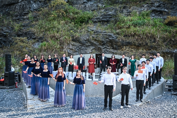 “我和我的祖国 一刻也不能分割……”安吉余村矿山遗址中回响着悠扬的歌声,音乐学院的师生们正一起演唱着《我和我的祖国》。音乐学院在安吉余村举办了“实干争先,奋斗有我”主题音乐会。音乐会上,《惊涛》《黄河颂》《月光下的凤尾竹》《湖笔颂》等或雄壮或优雅的乐曲精彩纷呈。师生们用音乐的语言来抒发对祖国“天蓝、山绿、水清”的赞美之情,参演师生们纷纷表示,一定会将“艺术赋能乡村振兴,美育助力共同富裕”的美好愿景持续描绘下去。
