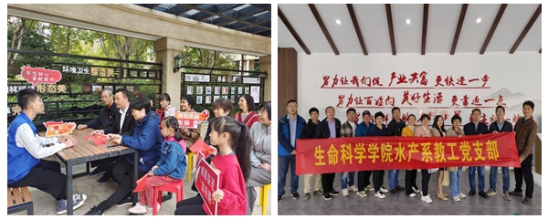 “党的声音暖心窝”,生命科学学院学生党员志愿者深入服务社区进行“二十大精神进社区”主题微宣讲,00后宣讲员以“党的二十大和我的人生路”开启青年学习说,用生活“小例子”阐释政治“大理论”,真真切切地让党的二十大精神走进社区群众、走入百姓心窝。各系教师党员深入产业基地开展学习宣传贯彻“党的二十大精神”专题党日活动,其中水产系教工党支部在长兴县洪桥太湖漾养殖基地进行了现场党课学习,湖州市劳动模范、水产系教师党员赵汉取带领支部党员参观并介绍了数字化养殖基地。
