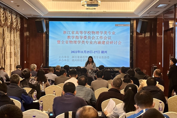 11月25日至27日,浙江省高等学校物理学类专业教学指导委员会工作会议暨全省物理学类专业内涵建设研讨会在湖州举行。此次会议由浙江省物理学类专业教学指导委员会主办,我校理学院承办。受疫情影响,会议采用了线上线下相结合的方式进行。校党委书记金佩华、副校长李庆峰出席,中国计量大学党委书记张土乔以及来自浙江大学、西湖大学、宁波大学等省内高校的60多位专家学者参会。