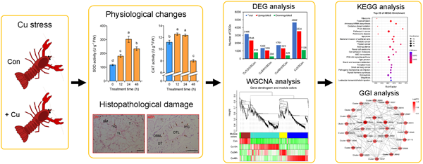 铜(Cu)是一种生物累积性重金属,是水生生态系统中广泛存在的环境污染物。克氏原螯虾是一种重要的淡水水产养殖物种,它们能够适应多种环境胁迫,包括重金属胁迫,其肝胰腺被认为是重要的重金属解毒器官。但是,目前克氏原螯虾肝胰腺应答铜胁迫的分子机制还不清楚。本研究利用比较转录组学、加权基因共表达网络分析(WGCNA)和荧光定量PCR技术(qPCR)分析了克氏原螯虾肝胰腺响应铜胁迫的分子机制。该项研究成果可为克氏原螯虾响应铜胁迫提供新的见解,并为其抗逆育种提供必要的理论基础。