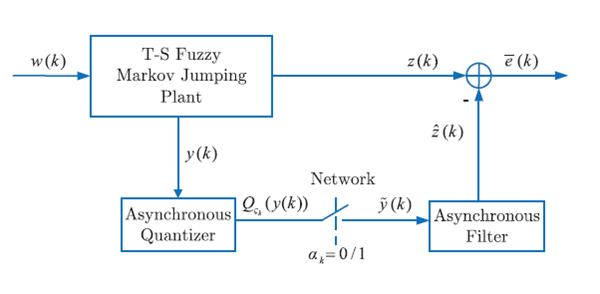 Markov跳变系统作为一类特殊的混杂系统,因其简单的数学描述形式和对实际系统强大的建模能力得到了学术界和工业界的青睐,在电力系统、航空航天系统等众多工程领域得到了广泛应用。在研究Markov跳变系统时,基于隐Markov模型考虑异步的综合方法可以有效克服实际系统中模态难以精确获得的困难,但同时又充分利用了可用的模态信息,可有效降低结论的保守性。该文章研究了一类具有丢包的网络化Takagi-Sugeno模糊Markov跳变系统的耗散异步滤波问题。系统测量采用对数量化器进行量化,并引入一种新的伯努利丢包模型来处理量化器至滤波器之间的丢包现象。滤波器、量化器和系统之间均是异步的,异步关系分别由两个隐Markov模型描述。通过采用模态和模糊规则依赖的Lyapunov函数方法和适当的矩阵不等式变换技术,得到了可使滤波误差系统随机均方稳定且具有一定耗散性能的异步滤波器设计方法。与现有方法相比,文章中所提出的设计方法可有效提高系统的滤波性能。