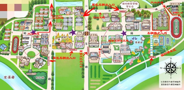 1.东校区正大门(西门)作为高铁接送新生车辆专用通道,东校区北门、中校区南门、中校区大学生活动中心侧门(二环东路门)、西校区正大门(湖州二中对面)作为社会车辆进校通道,校区所有门均可出校。