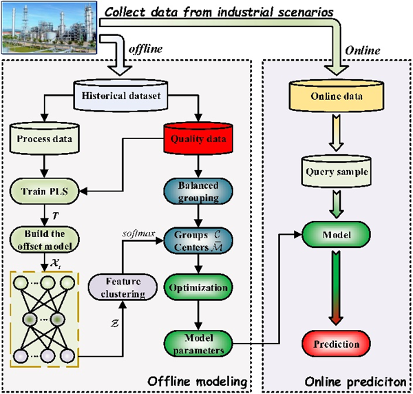 对于大多数具有强非线性和多模态特征的现代工业过程,传统的线性软测量方法可能无法很好地工作。同时,面对复杂的数据分布,传统的全局建模方法对数据表示能力提出了很高的要求,这对软测量建模提出了挑战。此外,数据分布的不平衡性在一定程度上加剧了模型对局部信息的忽略,从而提高了模型的整体预测难度。为此,针对实际工业大数据存在的强非线性和多模态特性,从概率融合局部建模的角度,首次提出了一种基于质量相关特征聚类(QRFC)的工业软测量模型。在QRFC中,偏最小二乘(PLS)可以对建模的初始特征空间给出合理的、解释性的指导。此外,通过均衡数据分组,使用统一的视角对不同的数据分布进行建模。进一步,引入调节变量学习特征空间,通过迭代方法完成输出相关聚类,隐式构建与质量变量的相关性,从而形成整体预测能力的局部逼近。一般来说,这种框架的好处,包括更好的相关性一致性和更强的处理过程非线性和多模态的能力,导致了卓越的性能。为了评估所开发的软测量模型的可行性和效率,以实际工业案例为例进行了验证。
