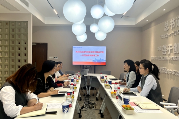 外国语学院负责人对浙大城市学院外国语学院的热情接待表示诚挚感谢,希望今后进一步加强互动交流,积极开展合作。双方就党建“双创”工作、考研就业、特色育人项目等工作进行了深入交流讨论,并实地参观了学院文化空间。