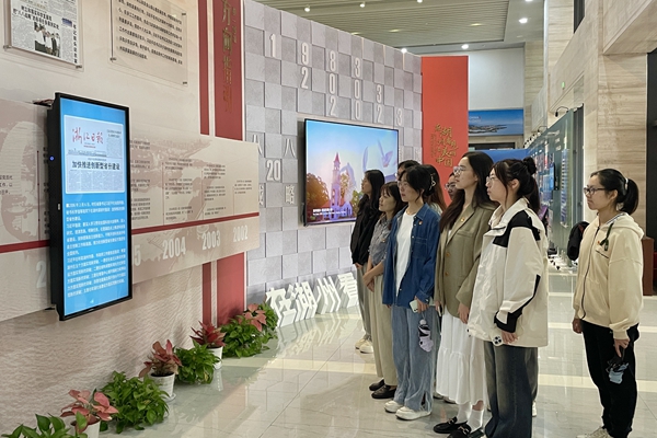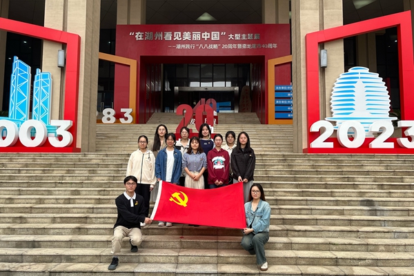 感悟思想伟力,凝聚奋进力量。为深入学习贯彻习近平新时代中国特色社会主义思想,持续全面深刻认识“八八战略”的思想内涵,10月27日,外国语学院学生党支部开展“循迹溯源学思想促践行”主题党日活动,学生党员赴湖州市档案馆参观“在湖州看见美丽中国”——湖州践行“八八战略”20周年暨撤地建市40周年大型主题展。