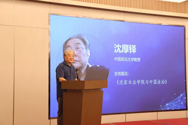 在主旨发言阶段,沈厚铎作题为《沈家本法学院与中国法治》的发言,着重强调了学习沈家本思想、弘扬法治文化的重要性,并对沈家本法学院的建设提出了要求:不仅要培养具备全面法律能力的学生,还要依托地域优势,发扬沈家本法治思想,让“沈学”成为社会的法治共识。