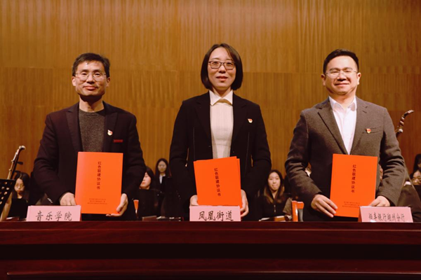 为扎实推进学习贯彻习近平新时代中国特色社会主义思想主题教育,不断深化“党建联建,共促发展”工作,11月29日,音乐学院党总支与湖州市凤凰街道党工委、恒丰银行湖州分行党总支在我校举行党建联建签约仪式。音乐学院、凤凰街道、恒丰银行湖州分行领导班子成员及各党组织党员代表共计30余人参加活动。