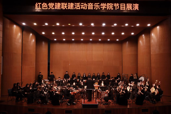 签约仪式前,音乐学院精心准备红色音乐演出,湖师音“锋芒”民族管弦乐团演奏了《庆典序曲》《印象国乐》,与湖师音合唱团联袂演出了《领航》等节目,赢得了在场嘉宾的掌声。