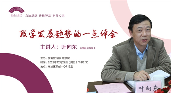主讲人简介:叶向东,中国科学技术大学教授,曾任校党委副书记、副校长、纪委书记等职务。2013年获第十四届陈省身数学奖,2018年获国家自然科学二等奖,2019年当选中国科学院院士,2020年获何梁何利科学与技术进步奖,2022年当选发展中国家科学院院士。长期从事基础数学中拓扑动力系统、遍历理论及其应用的研究。他与合作者在动力系统的结构定理、多重遍历平均的收敛、熵的理论、动力系统的复杂性及其应用等方面进行了深入研究并得到了一系列深刻的结果。