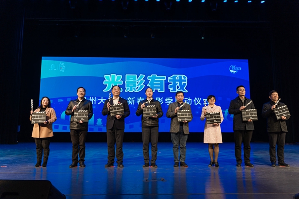 仪式上,与会领导们手持电影场记板,共同启动本次湖州大学生新春电影季。