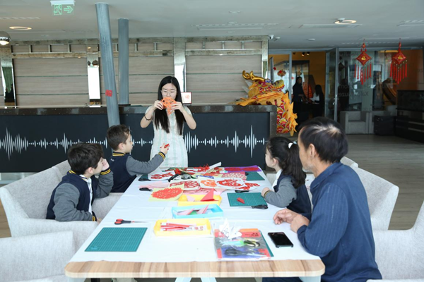 在24日的剪纸大师班活动中,参与者们在浓浓的中国文化氛围中体验了以剪纸为主的手工制作的乐趣。活动中,孔院教师讲解了剪纸的源起、文化内蕴及制作技巧,辅导小朋友们完成各自的剪纸创作。此外,孔院老师还准备了中国结、纸艺灯笼、拉花龙制作等手工制作体验。