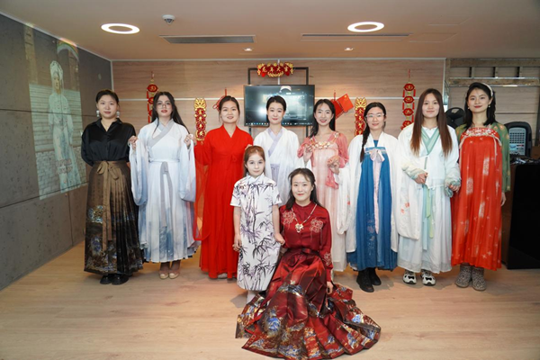 在28日的中国服饰文化讲座中,孔院老师介绍了中国历代服饰的演变、汉服与和服的区别、中国少数民族服饰以及马面裙。在与观众进行互动问答时,孔院老师还向参与互动的观众赠送了精美的发簪。随后,一场美不胜收的汉服秀为整个活动画上了一道亮丽的句号。