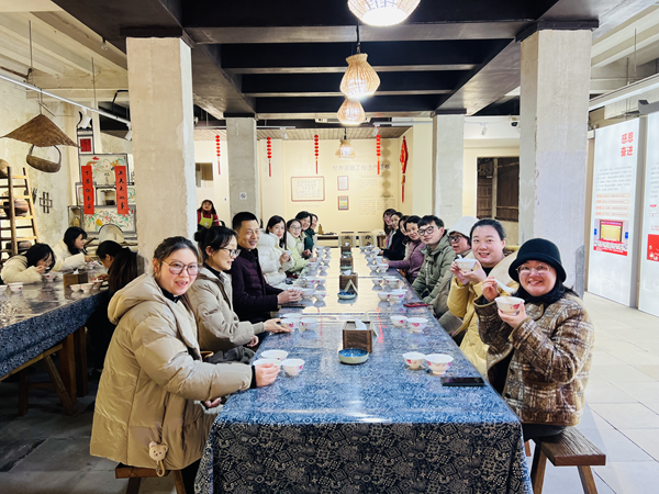 教职工们集合前往太湖溇港,途径环太湖路,沿途欣赏太湖美景,到达溇港后,在讲解员的带领下,参观了太湖溇港文化展示馆、义皋古村落,体验“三道茶”礼俗等,品味太湖溇港--古老水乡的韵味与活力。