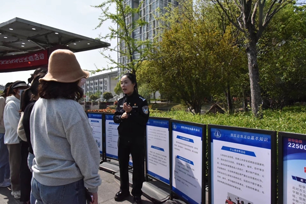 在第九个4.15国家全民安全教育日来临之际,4月10日下午,我校联合吴兴区政法委、龙泉街道、龙泉派出所、中国移动吴兴分公司举办了主题为“总体国家安全观 ,创新引领10周年”的国家全民安全教育日、防范网络电信诈骗、禁毒和反恐防暴宣传教育系列活动。此次活动旨在普及维护国家安全等法律法规,增强大学生法治意识,提升大学生自我保护能力。