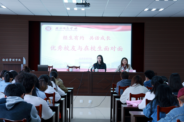 为进一步加强校友与母校之间的联系与交流,充分发挥优秀校友对在校学子的引领示范作用,在学校高等教育66周年暨办学108周年校庆之际,经济管理学院开展“经生有约 共话成长”优秀校友与在校生面对面活动。活动邀请到2013届物流管理专业毕业生王明俊、21 届国际经济与贸易专业毕业生崔静与同学们分享人生历程和发展心得。经济管理学院负责人及80余位经管学子参与了分享会。