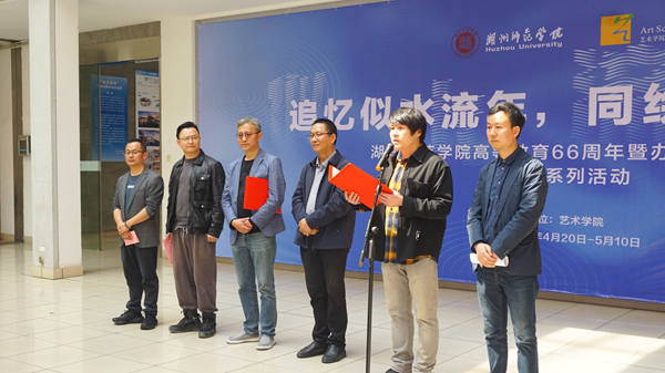 4月20日下午,“似水流年”校友作品展在艺术学院一楼展厅拉开帷幕。本次展览共展出了30余件来自杭州、宁波、嘉兴、金华、台州等地市优秀校友的美术与设计作品,涵盖书法、中国画、油画、品牌设计、室内设计、景观设计、公共艺术设计等多种类型。开幕式上,艺术学院负责人表示,本次展览是一次艺术的盛会,更是校友与母校之间情谊交流和共同成长的见证。他祝愿校友们在各自的奋斗征程中取得更加辉煌的成就,同时希望能够汇聚广大校友的力量,共同助力学校加速建成高水平的“湖州师范大学”。