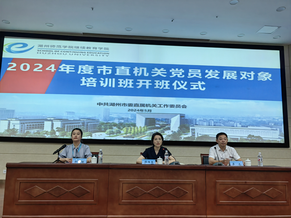 近日,继续教育学院举办2024年度湖州市直机关及国资国企系统党员发展对象培训班。市直机关工委副书记邵伟惠,湖州市国资委组宣人事处副处长叶永连,继续教育学院负责人及相关负责人分别出席培训开班仪式,市直机关、国资国企系统党员发展对象参与培训。