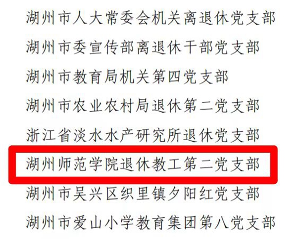 近日,浙江省委老干部局公布浙江省第二批离退休干部“三强六好”示范党支名单,我校退休教工第二党支部获浙江省第二批离退休干部“三强六好”示范党支部。