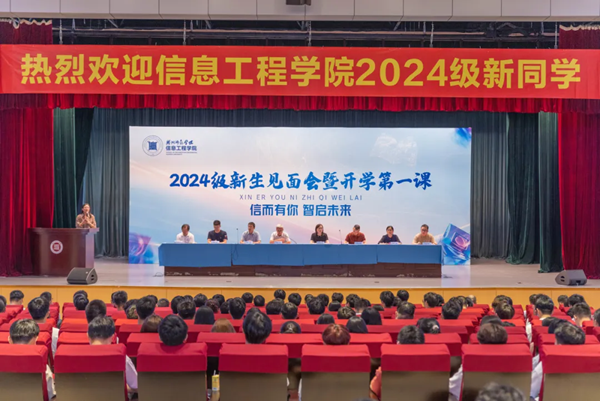 近日,信息工程学院在中校区大学生活动中心举行了“信而有你,智启未来”2024级新生见面会暨开学第一课,信息工程学院党政领导班子、系主任、全体新生班主任代表、教学办、研工办、学工办工作人员及2024级全体本硕新生参会。