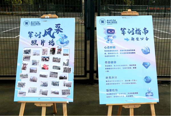 在暖心物资点,信息工程学院贴心准备了“温情四宝”:药品补助包、饮水补给机、糖果能量包、姜茶暖心杯,为军训期间刻苦训练的新生们送上温暖,成为他们坚强后盾;在温馨交流点,年级辅导员与新生进行一对一沟通,细心关注每位学生的训练动态与身体状况。在风采互动点,信息工程学院准备了军训新生必备指南,暖心提示新生的军训注意事项,同时还精心制作了军训风采照片墙,通过照片记录新生们难忘的军训时光。
