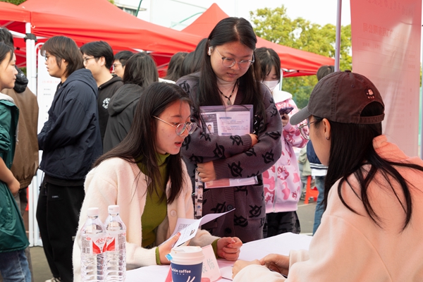 招聘会现场气氛热烈,毕业生们手持精心准备的简历,主动与意向单位招聘负责人面谈,详细了解工作内容、薪资待遇、发展前景等情况,自信从容地展现自己的能力和优势。除了招聘展台外,招聘会现场还精心设置了简历专家问诊、考公考编咨询、考研留学服务等6个专区,充分借助校内外专业力量为毕业生提供精准就业指导服务。