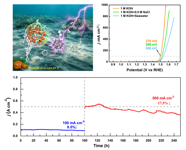 近日,我校工学院材料科学与工程系陈光良教授(通讯作者)团队以我校为第一单位在化工领域国际著名期刊《Chemical Engineering Journal》(中科院一区TOP,IF:13.3)上,发表题为“ Designing persimmon-liked FeOOH-(CrCo)Ox on the plasma-treated cobalt foam for a highly efficient oxygen evolution in an alkaline-seawater electrolyte”的研究文章。
