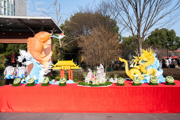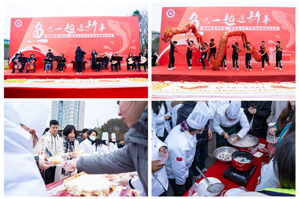 本次美食节以“‘鱼’你一起过新年”为主题,分开幕式、捕鱼活动、美食年货节三大会场。开幕式现场有雕刻展示区、4.2米*0.6米巨型蛋糕分发、制作鱼圆体验活动等。捕鱼活动结束后,学校餐厅将连续三天开展免费品尝“鱼宴”活动,让广大师生品尝劳动的果实、品味收获的喜悦。美食年货节共举办2天,由34家供货商提供几百种商品,惠及师生,同时也为冬日的湖师校园增添一份“年味”。