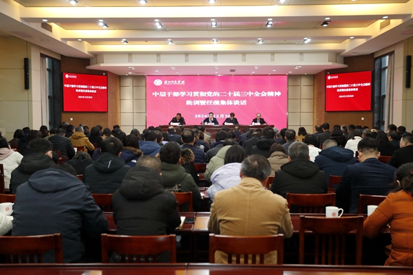 12月底,学校举办中层干部学习贯彻党的二十届三中全会精神集中轮训暨集体任前谈话。校党委书记许慧霞作主题报告,校纪委书记任伟海作集体廉政谈话,副校长(主持行政工作)盛况主持,校党委副书记陈永华出席。学校全体中层干部、附属医院班子成员参加了轮训和谈话。