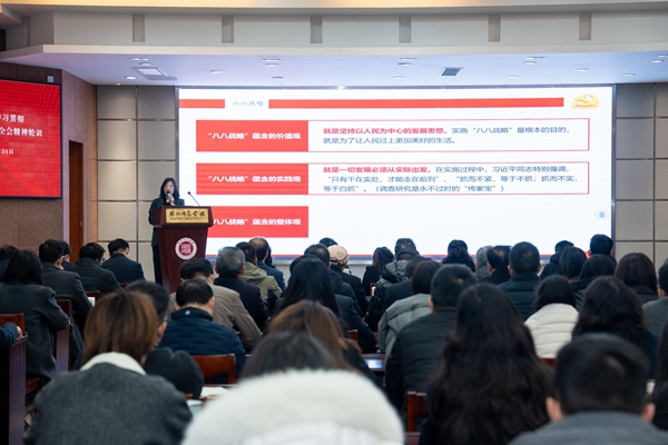 许慧霞表示,党的二十届三中全会胜利召开,充分体现了以习近平同志为核心的党中央进一步全面深化改革开辟中国式现代化广阔前景的历史主动和坚强决心。特别是全会《决定》指出,要“统筹推进教育科技人才体制机制一体改革”,为我们所有教育工作者理清了思路、指明了目标任务和前进方向。在全体中层干部顺利集中调整到位之际,党委研究决定对学习贯彻全会精神进行一次再集中、再培训、再强调、再落实,把全体干部的思想和行动统一到学习贯彻党的二十届三中全会精神和省委第十五届五次、六次会议精神上来,把力量和智慧凝聚到加快推动学校事业高质量发展上来。