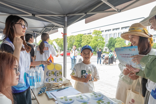 下午13:30,校友们在东校区校训广场报到,领取打卡地图和活动定制纪念包,观看舞龙舞狮表演,并在校友签名墙上留下签名和寄语,镌刻难忘记忆。在吴兴园,校友们转动彩虹转盘,并感受手工漆扇的乐趣。在大学生活动中心,学校准备了丰富的音乐节目,并为校友现场画人像速写。在恩泽碑,校友们在画板上留下印记,共同作画,参与投壶游戏,回忆昔日友谊。在讲解员的带领下参观完校史博物馆、沈行楹联艺术馆之后,校友们来到胡瑗广场,参与拼贴诗会、折扇创作、“杏坛寻春”山野手作集市的“青绿扎染、植物拓染、花艺帽匠”等活动,在胡瑗像前合影留念,重温缤纷校园时光。在德清湖,学校为校友们准备了专属“软陶记忆包”,内含校徽或院徽配色陶土及模具,可以现场制作并带走留念。在月亮广场,校友们一起为校园植物制作并挂上科普书签,参观校园“小花大世界”摄影活动优秀作品展,并聆听学院科普讲座。活动终点设在东校区校友中心,校友们在此领取纪念奖章,珍藏美好回忆;参观校园文创产品展览,感受校园文化魅力。