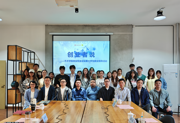 4 月 26 日下午,艺术学院在学院教师发展中心举办“创业者说 ——创业校友论坛暨大学生就业指导活动”。艺术学院党政领导班子、优秀校友代表、教师代表、辅导员以及各专业学生代表共同参与。