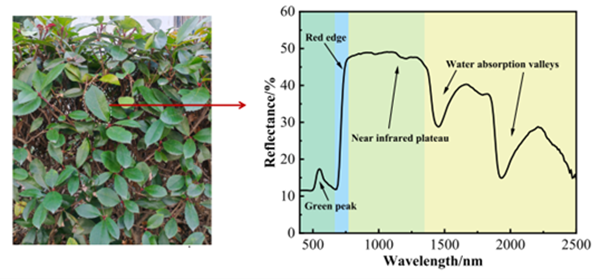 同色、同谱、耐候性等问题都在一定程度上受到光谱谷的影响。水谷的模拟通常基于植物的特征光谱,因为水通常被认为是影响植物叶片近红外光谱响应的主要因素。近红外波段中的吸收基团类型证实,1450nm左右的绿色植被吸收带对应于-OH的第一谐波产生,1940nm左右的吸收带归属于-OH的组合频率。因此,有效的近红外光谱模拟材料必须具有-OH的特征峰。
