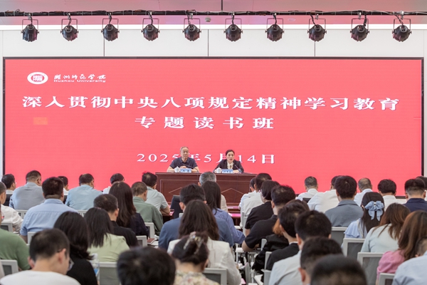 5月14日至15日,学校举办深入贯彻中央八项规定精神学习教育专题读书班,读书班采取专题党课、专家辅导报告、专题研讨、个人自学等方式结合进行。校党委书记许慧霞出席相关活动并讲授专题党课,校领导班子成员、中层干部、科级干部等参加了各项学习。